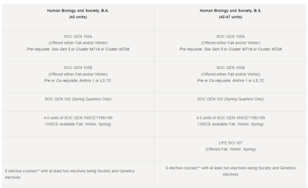 - HBS 多了一些社科,比如 Anthro1和选读的社科两门 (比如Socio1,MCDB50)