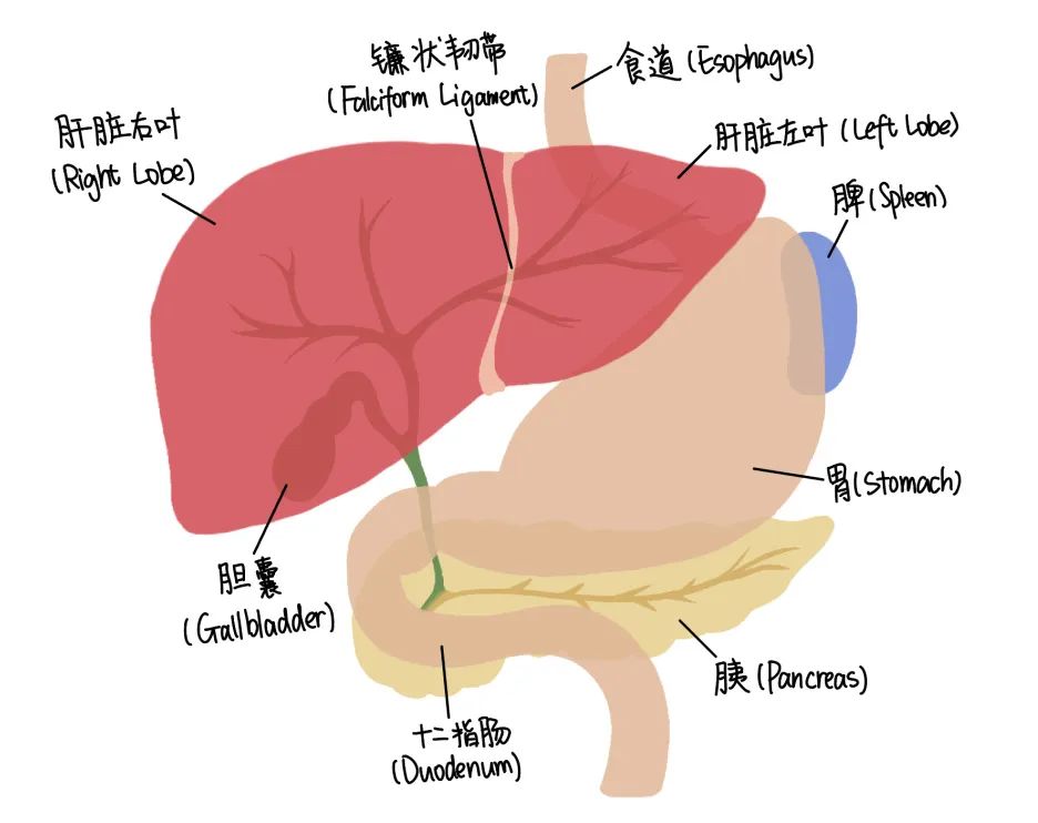 俗话有说“左胃右肝”,肝脏是位于人体横膈膜之下,腹腔右上侧的人体重要器官。因此右胸下一个手掌的位置,肋骨之下大致就是肝脏和胆囊所在之处。